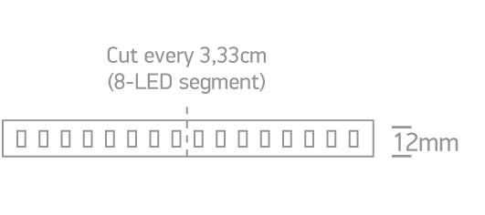 Can be cut every 3,33cm (8-LED segment).