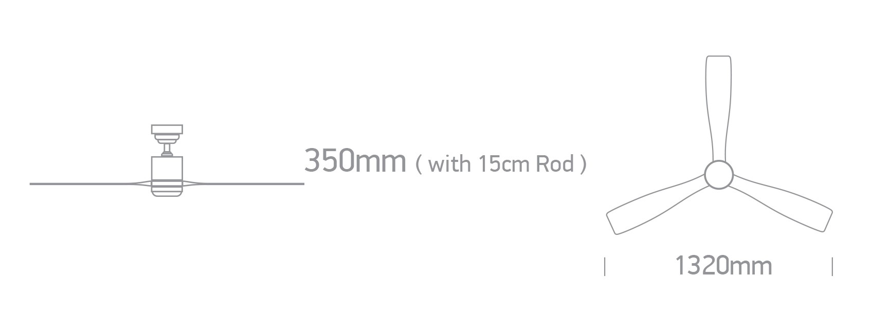 Complete with remote control, 15cm and 30cm ceiling rods.