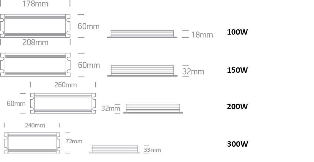 24V DC rakaþéttur spennir 100-300W ódimmanlegur